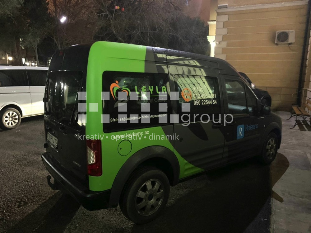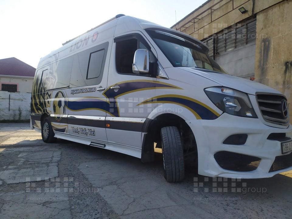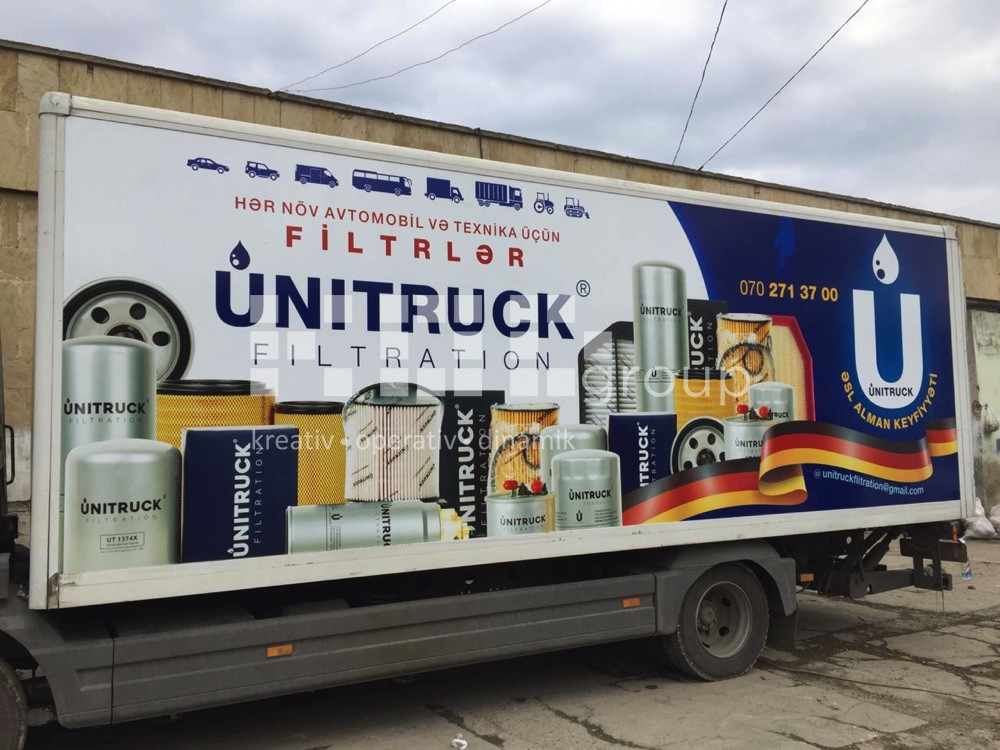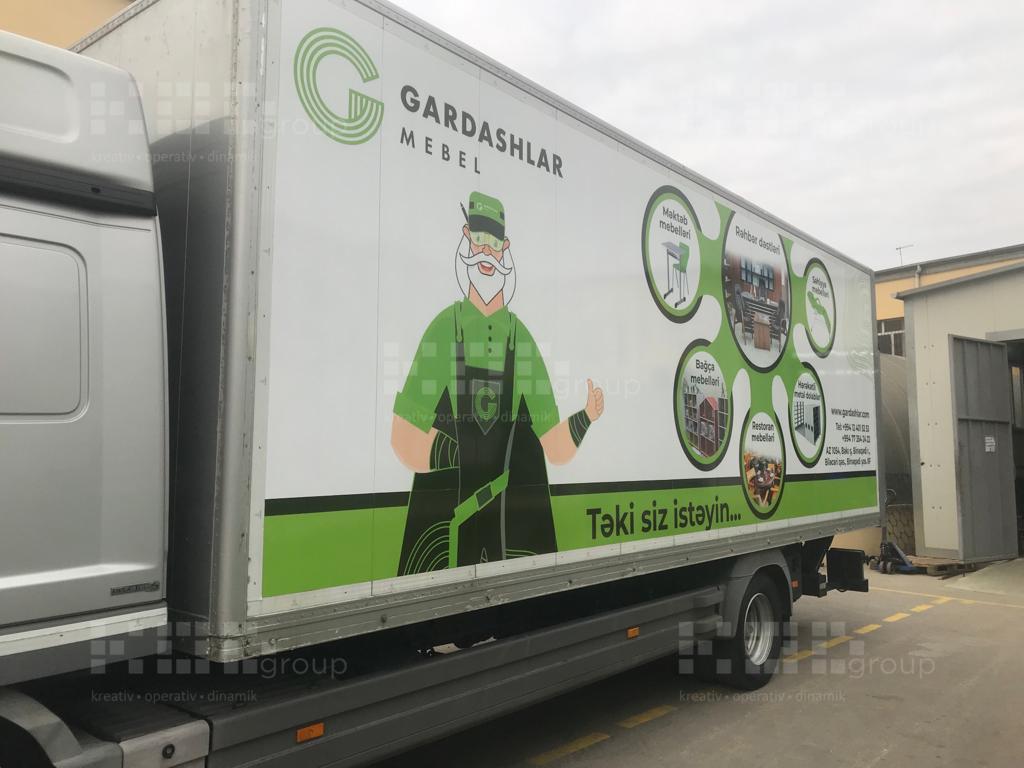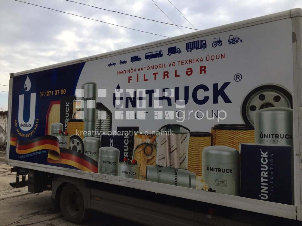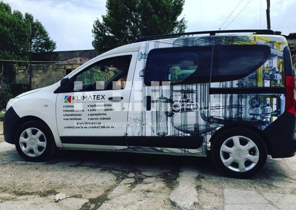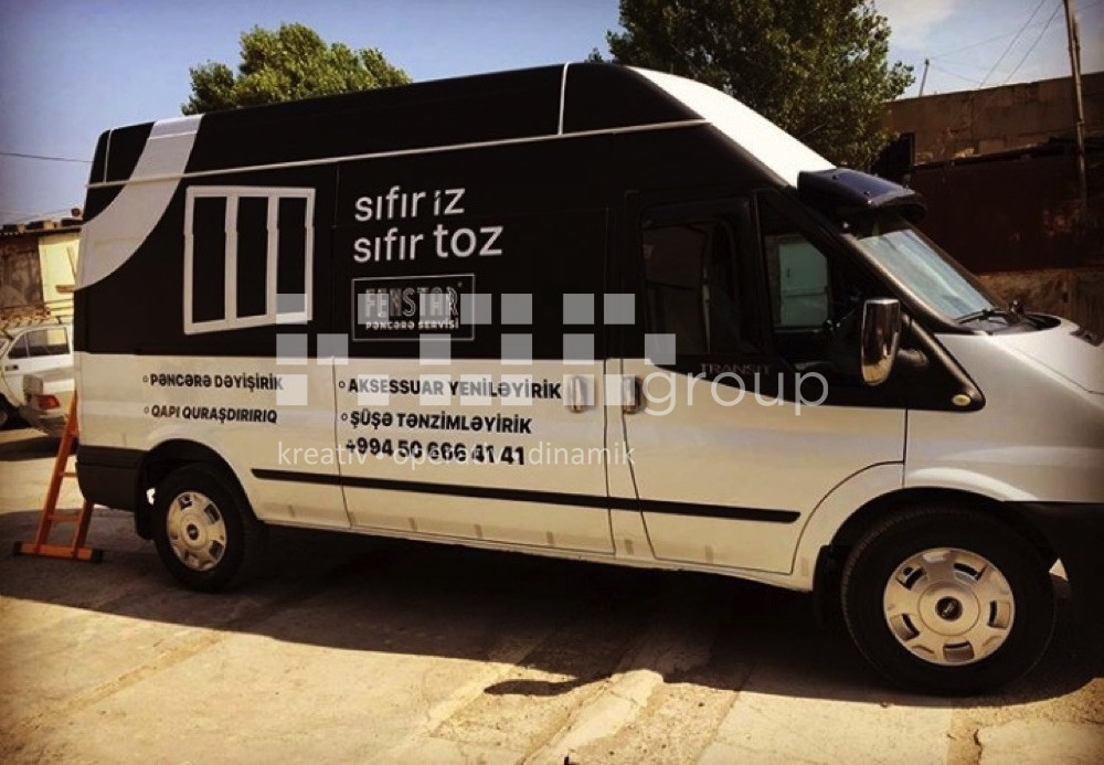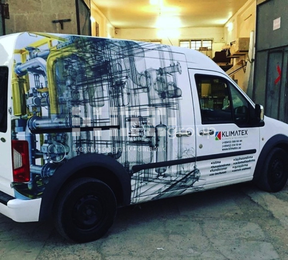 Avtobrendinq – Şirkətlərin fərdi və ümümi avtomobilləri, avtobuslar, ambulanslar üzərində vinil işləmə ilə brendin özünə xas olan görünüş verilir. Vinilləmə dizayna əsasən tam və qismən ola bilir. İstifadə olunan materiallar alman və türk istehsalıdır. Oracal vinilləri ilə fon vinilləmə, unifol və filmolux vinilləri ilə çap montajı avtomobilin üzərinə tətbiq olunur.