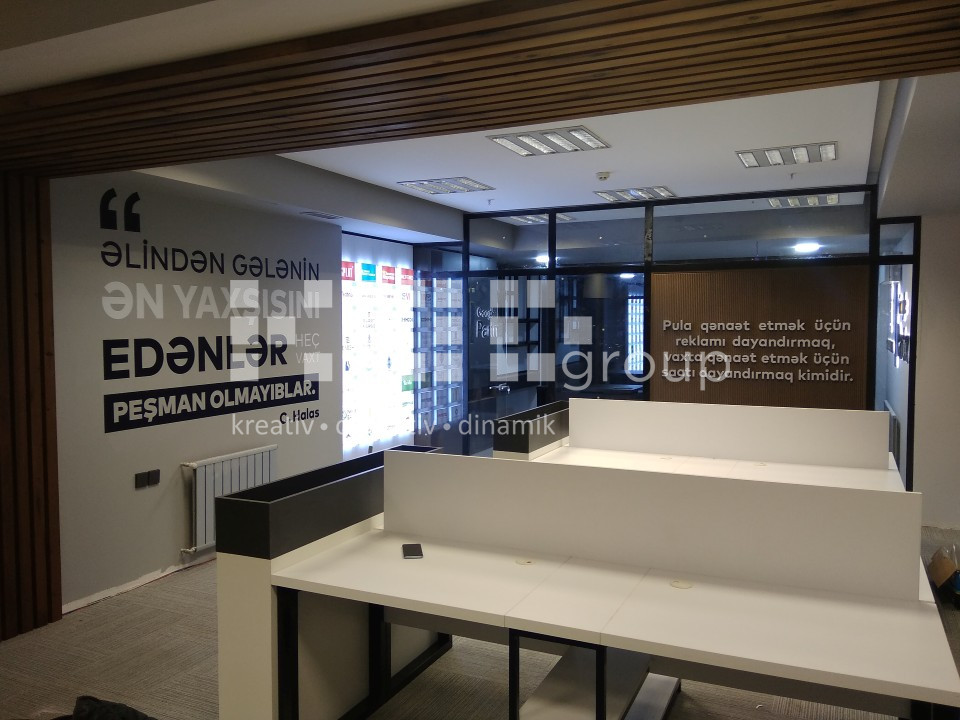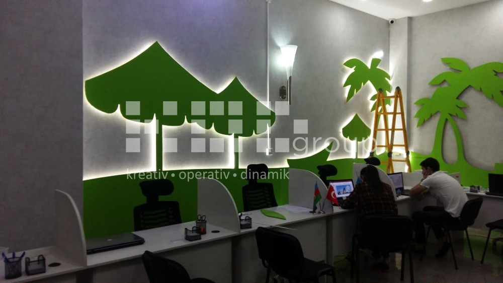 İnteryer və dekorasiya – istənilən obyektlərin, apteklərin, mağazaların, kafe və restoranların, yanacaq doldurma məntəqələrinin, idman komplekslərinin, bağçaların, klinikaların, dövlət müəssisələrinin,bankların, muzeylərin, molların və s. iç dekorasiya, təmir dizaynı, işıqlandırılması, reklam vasitələrinin yerləşdirilməsi nəzərdə tutulur. Biznesinizi qurmaq istədiyiniz məkanın təmir dizayn və mebel təchizatını peşəkar komanda üzvlərimizin zövqünə buraxın. Xidmətimizdən razı qalacağınıza əminik.