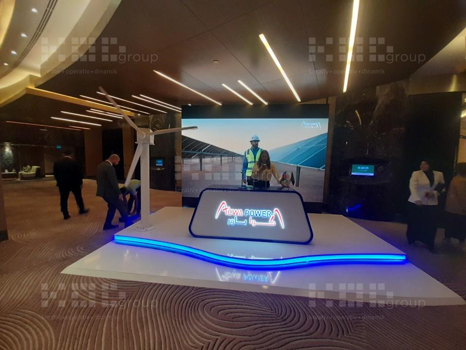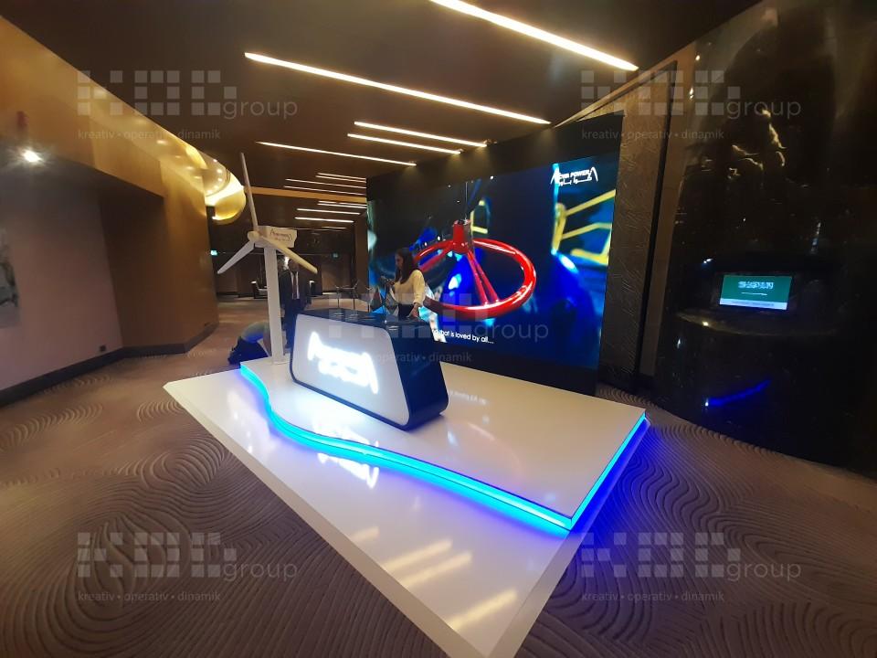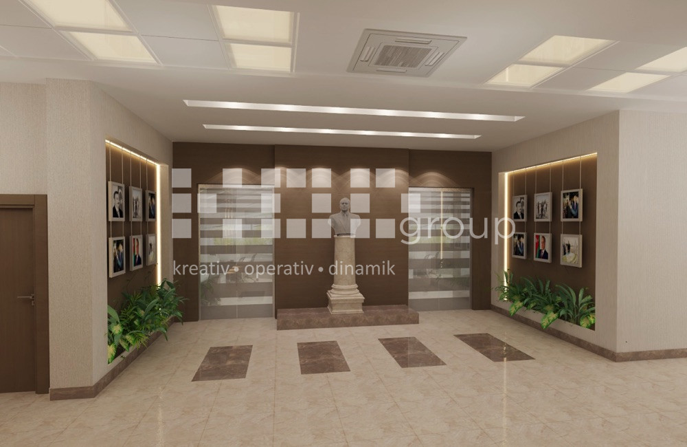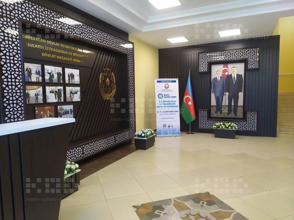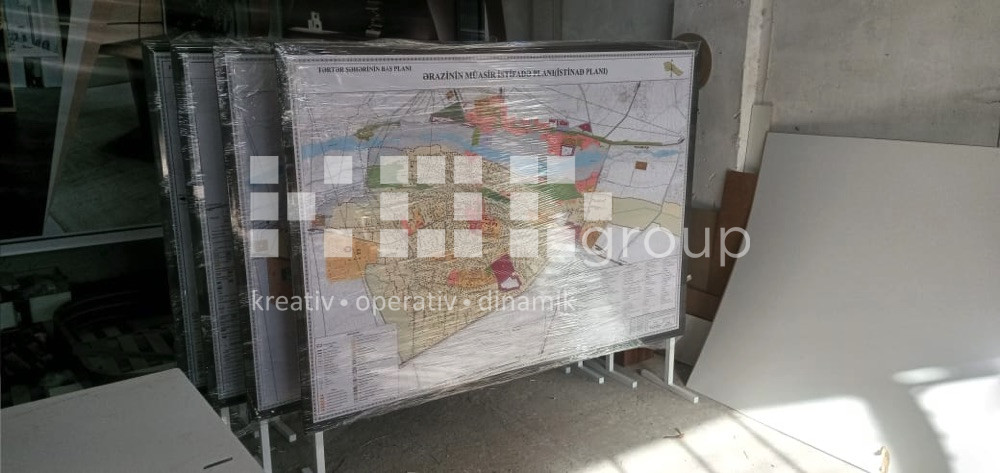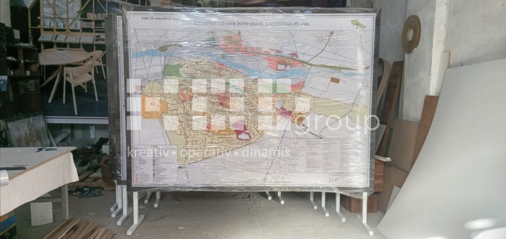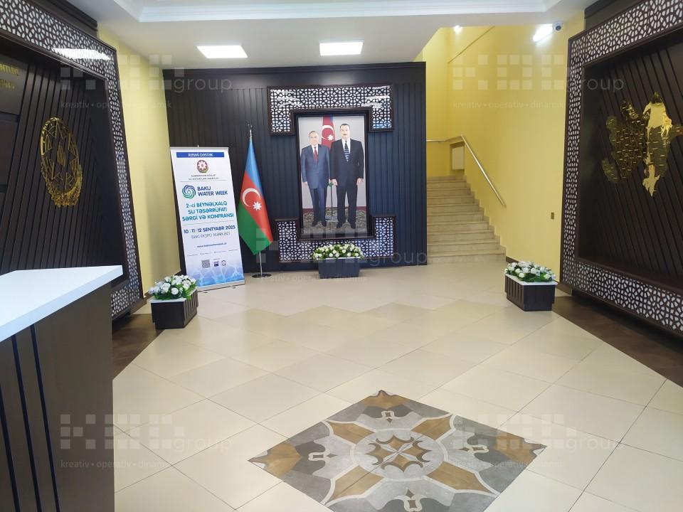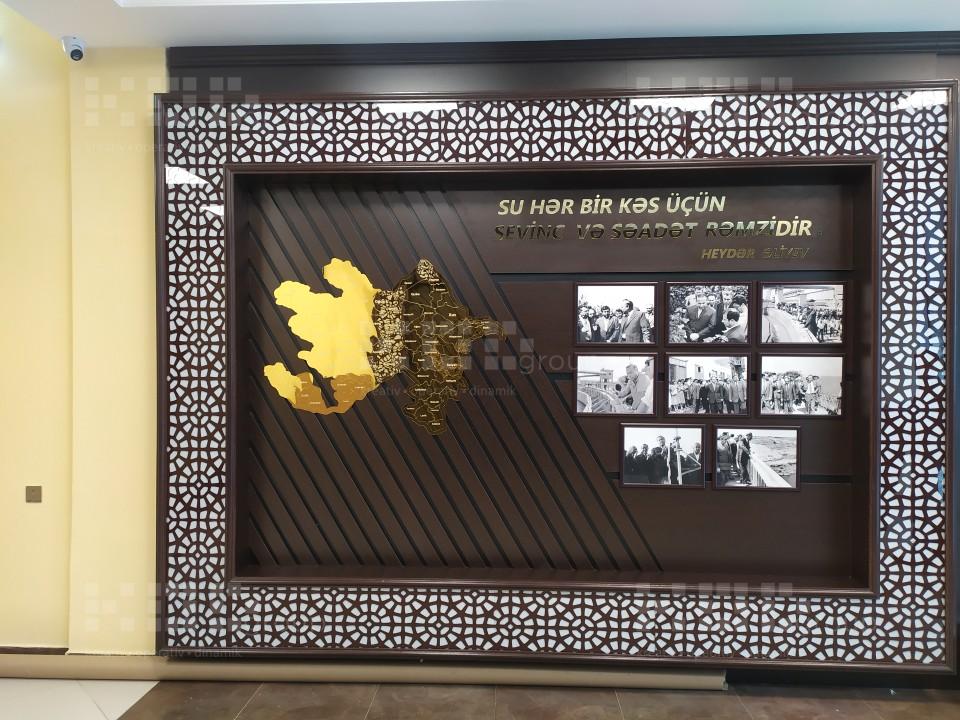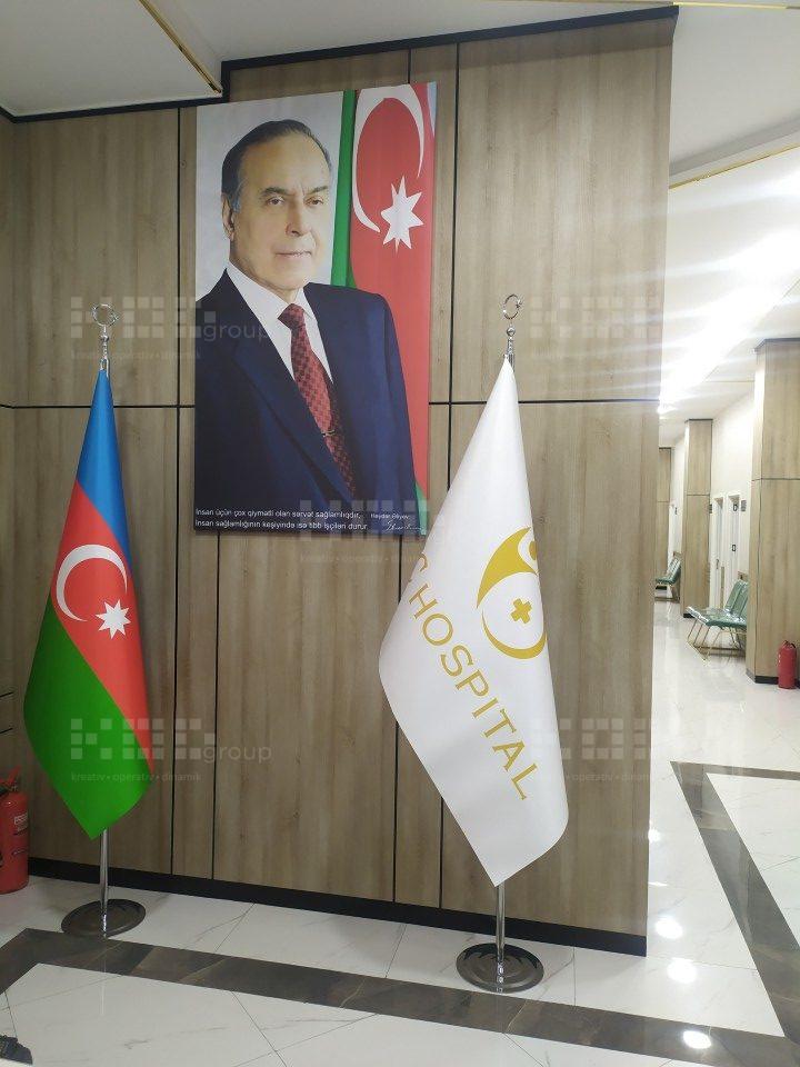 Stend və guşə – əsasən fabrik və zavodların, idman komplekslərinin, bağçaların, klinikaların, dövlət müəssisələrinin, muzeylərin, və s. Hollarına, giriş hissəsinə dövlət rəmzlərinin və dövlət başçısının fəaliyyətini əks etdirən müxtəlif forma və ölçülərdə guşələrin hazırlanması və quraşdırılması nəzərdə tutulur. İstifadə olunan materiallar əsasən Mdf, laminat, foreks, şüşə və s. olur.